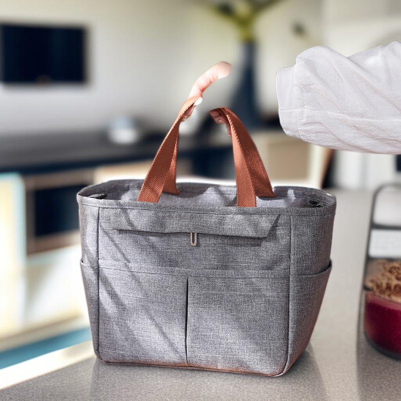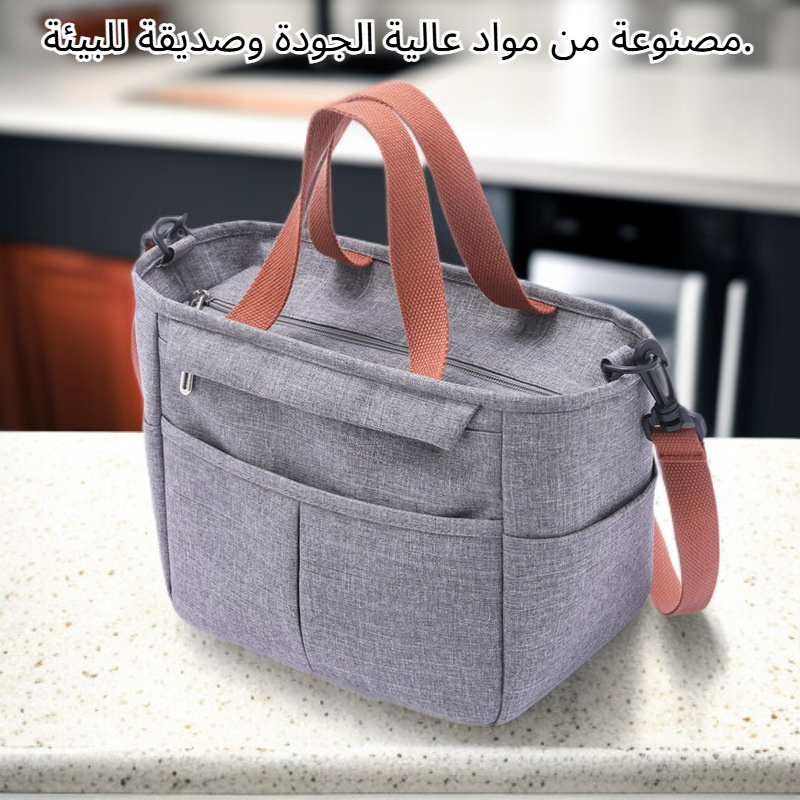 ● حقيبة طعام عازلة للحرارة تحافظ على حرارة أو برودة وجباتك لساعات طويلة، مما يجعلها مثالية للمدرسة أو العمل أو الرحلات. ● مصنوعة من مواد عالية الجودة وصديقة للبيئة، تضمن سلامة الطعام وسهولة التنظيف بعد كل استخدام. ● تصميم أنيق مع مساحة واسعة وجيوب إضافية لتخزين أدوات الطعام والمشروبات بشكل منظم ومرتب. ● مزودة بسحاب قوي ومقبض مريح للحمل، مما يوفر سهولة في التنقل والاعتماد عليها في جميع المناسبات.